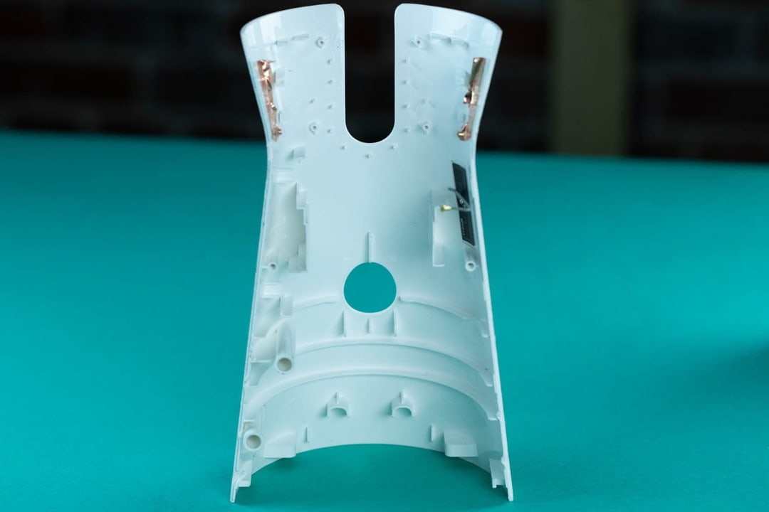 外壳的肋骨非常高。令人印象深刻的是,塑料填充了所有的肋骨,并没有在化妆品表面造成凹陷痕迹。